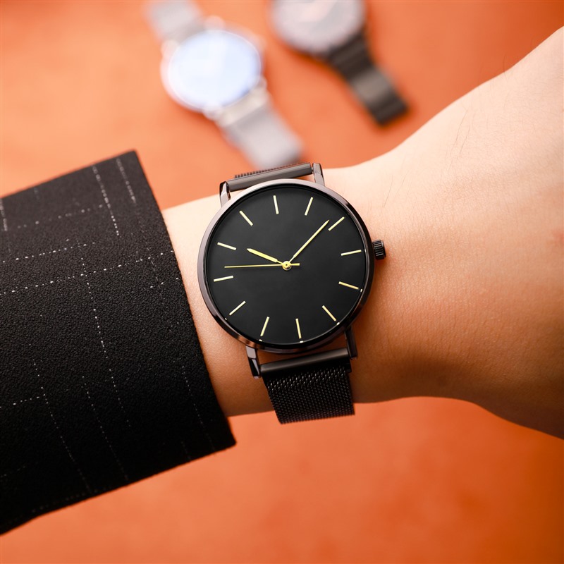 High Quality Minimalism Thin Men and Women Watch Stainless Steel Magnetic Mesh Strap Quartz Watch Gift Men Wristwatch No logo