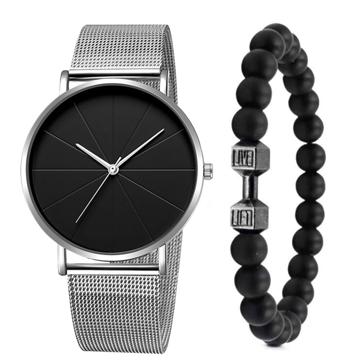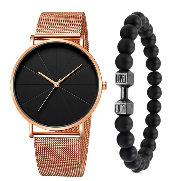 Factory direct European and American best selling men’s watch set mesh belt beaded quartz watch simple fashion watch men’s wholesale