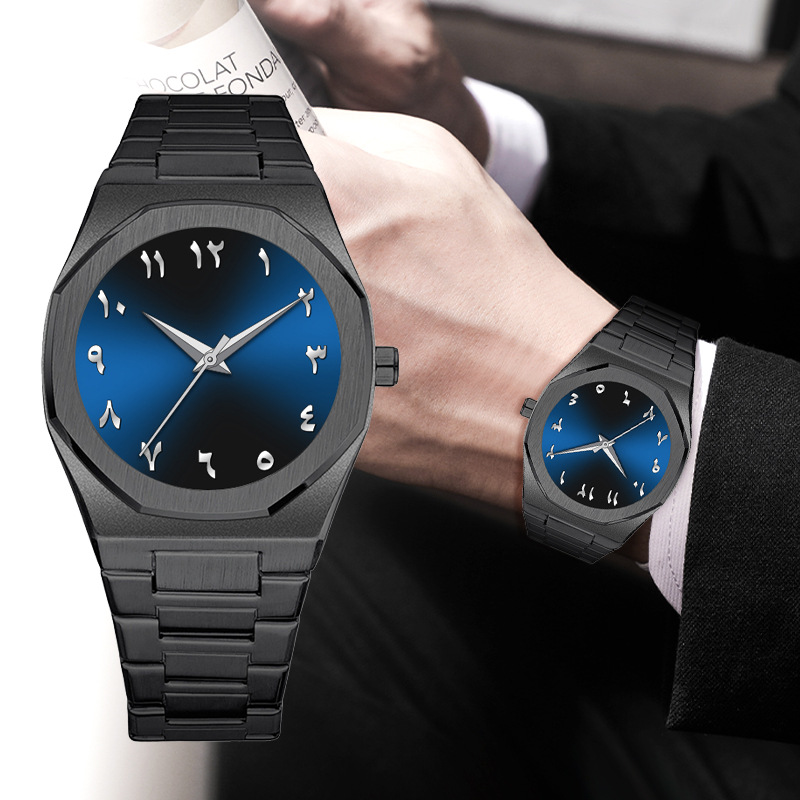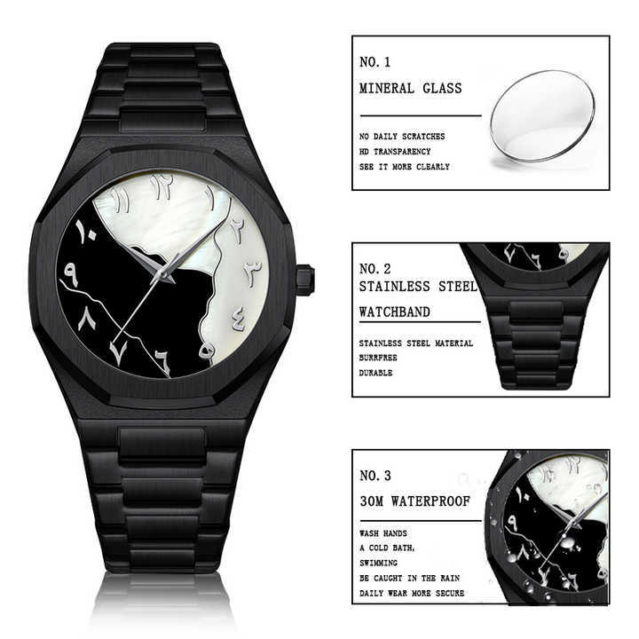 Hot Selling Quartz Movement Mineral Glass No Logo in Stock Water Resistance Arabic Numerals Black Stainless Steel Men Watches