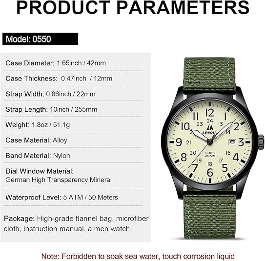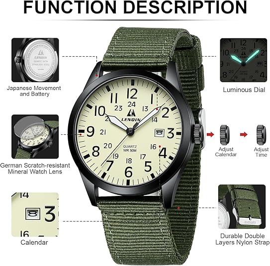 - ⌚ EASY TO READ TIME: 12 / 24 hrs military time and luminous dial. The mens watches equipped with date calendar can tell you the time quickly and accurately. Come with luminous function, easy to read the time even in the dark.