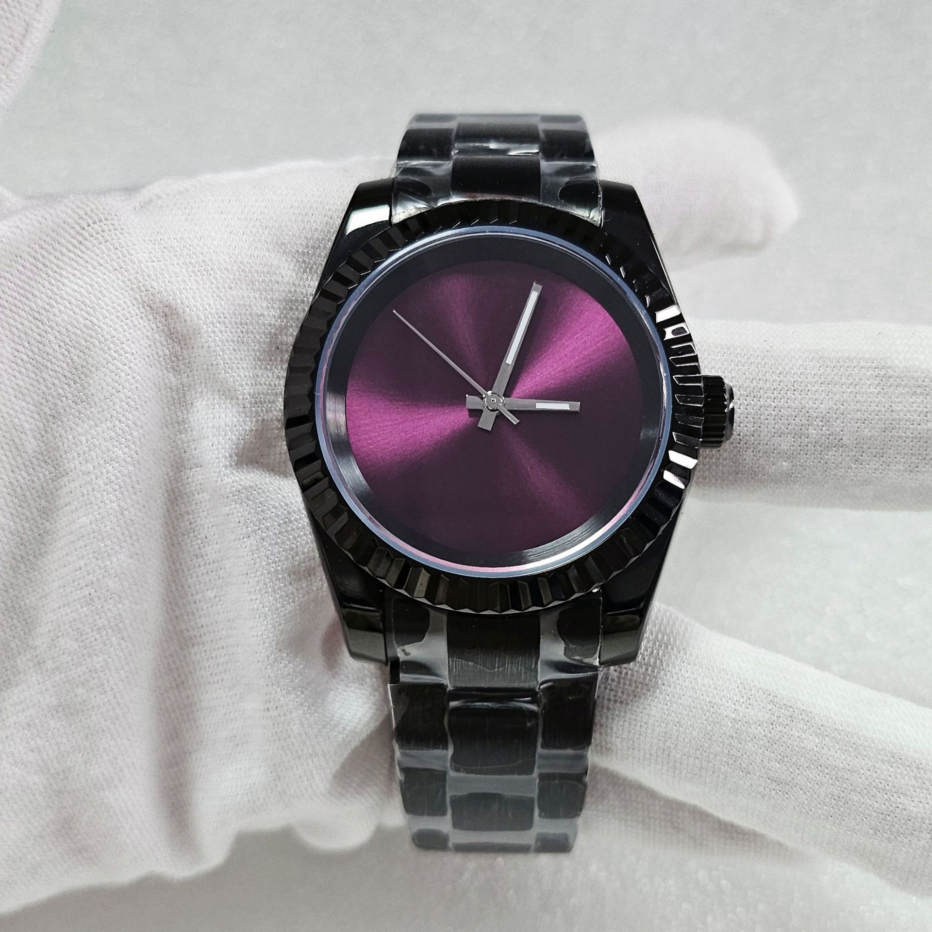 Men Watch 39mm Vintage No logo Dial Retro Business Luxury Sapphire NH35 Automatic Mechanical Carving Fluted Bezel Men Watch